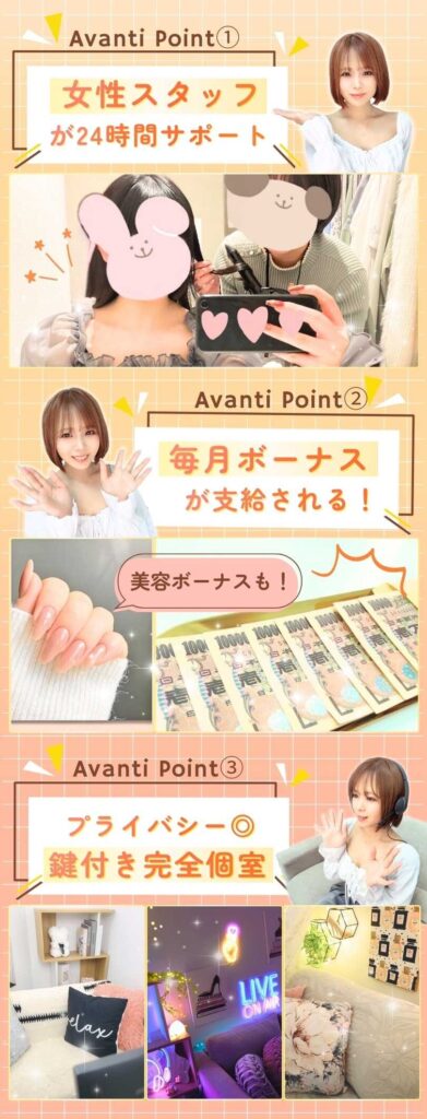 などなど、環境面から報酬面まで「チャットレディを始めやすい・続けやすい」配慮が徹底されています。