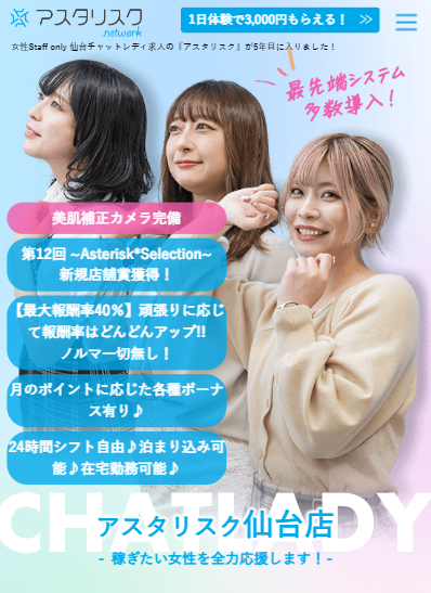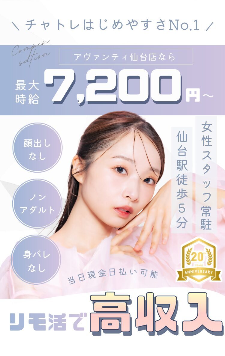 アヴァンティ仙台店は、運営実績20年の信頼をもとに、多くのチャットレディ初心者に選ばれているチャットレディ専門事務所です。